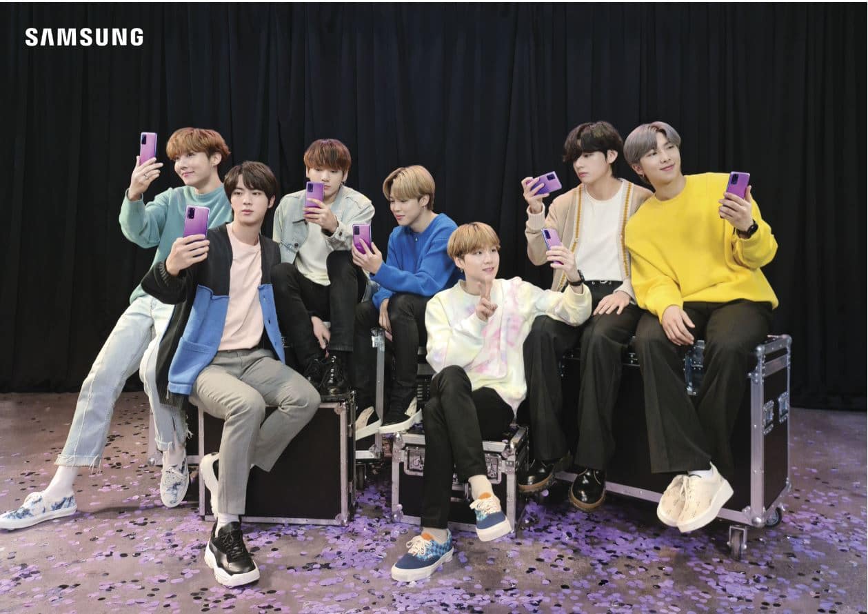 Samsung presenta a los fanáticos del K-pop el nuevo Galaxy S20+ BTS Edition que presenta un exterior en color morado conformado por cristal y metal e incluye audífonos inalámbricos inspirados en la banda surcoreana BTS. Dentro de la caja, el dispositivo cuenta con stickers decorativos para que los fanáticos personalicen aún más sus dispositivos, además de tarjetas con fotos de los miembros de la banda.